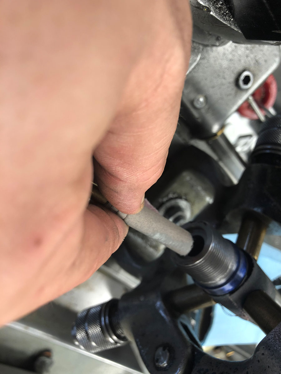 It is really important to only go in a little at a time, or you risk the chips gouging the chamber you’re trying to ream.