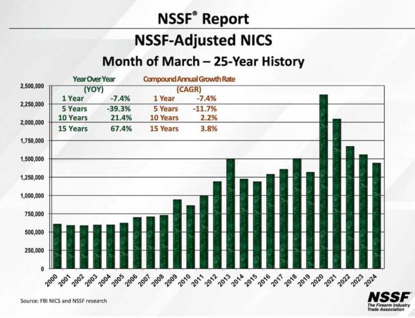 The National Shooting Sports Foundation (NSSF) released their adjusted figures for the National Instant Criminal Background Check System (NICS) for March 2024.
