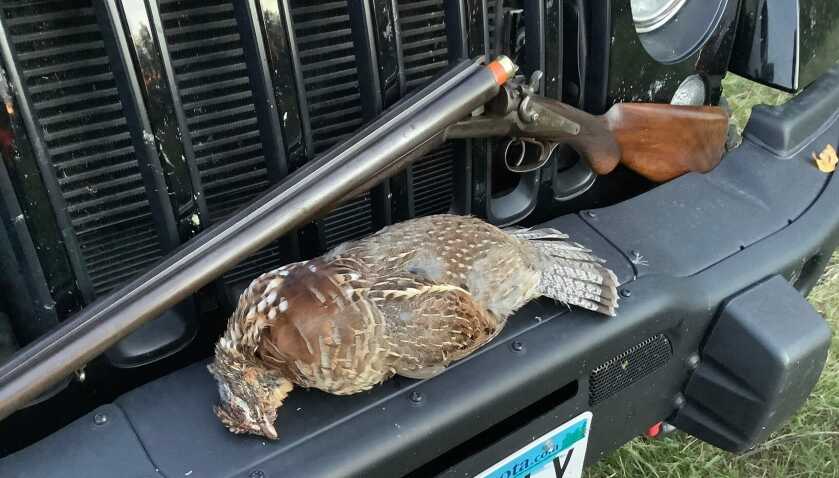My best chance came at a place I thought looked very promising. I was in a small stand of pines elevated slightly above a small swamp. There was a fallen tree right on the edge of the pines where it opened up to the swamp below. As I came to the fallen tree, a buddy 60-70 yards to my right called out. When I replied, I dropped the little double to one hand, and at that moment a grouse erupted from the other side of the tree, not 3 yards away. I got the gun to my shoulder, hammer cocked, and pointed at the grouse. Then pulled the trigger where the grouse was and bagged a handful of birch leaves. I had shot where the bird was instead of where it would be.