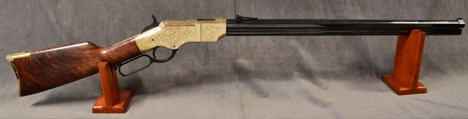 The New Henry Original Rifle is a line-by-line reproduction of the first lever action rifle ever put into production, which was patented by Benjamin Tyler Henry in 1860, except for concessions needed to utilize a caliber other than the now extinct .44 Henry Rimfire. It features a brass receiver and crescent buttplate, extra-fancy American Walnut furniture, and a polished blued steel octagonal barrel.
