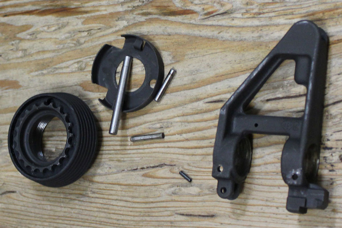 - After making the switch to a new forend, you may wind up with some leftover parts. If you have to hammer on the front sight post to get it free, it may not be worth much.