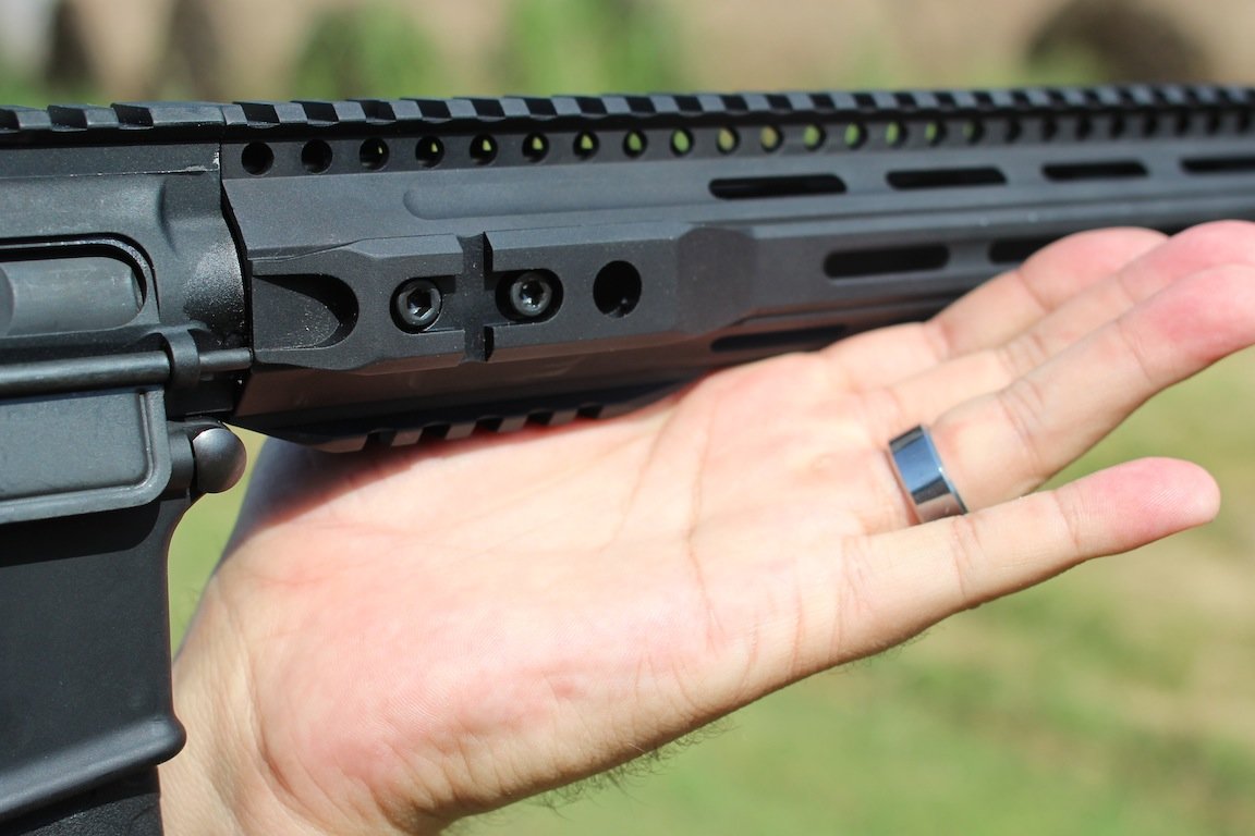 Those with normal arm lengths can still use it. In fact, the FFSSR comes in three shorter lengths. And the swell on the back of the forend makes a great handhold. I find myself carrying the rifle with my hand here, but others may prefer a compact stance–and this will keep your hand off of the mag well.