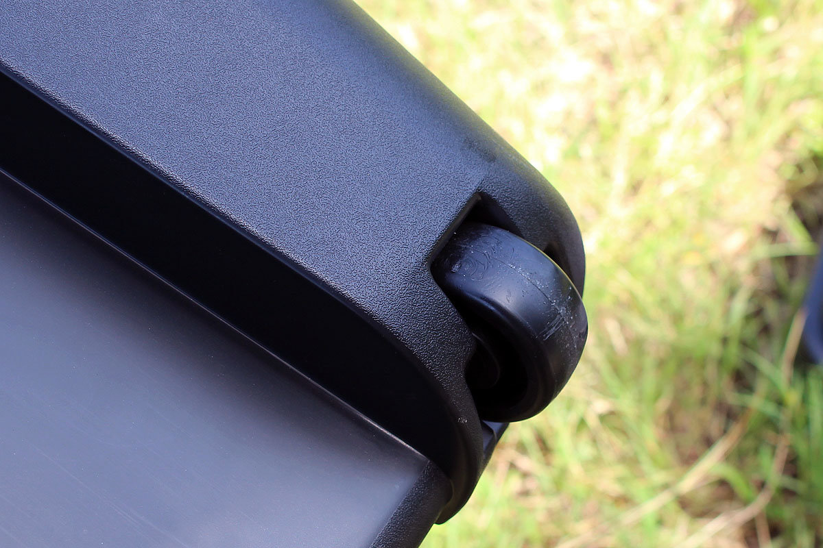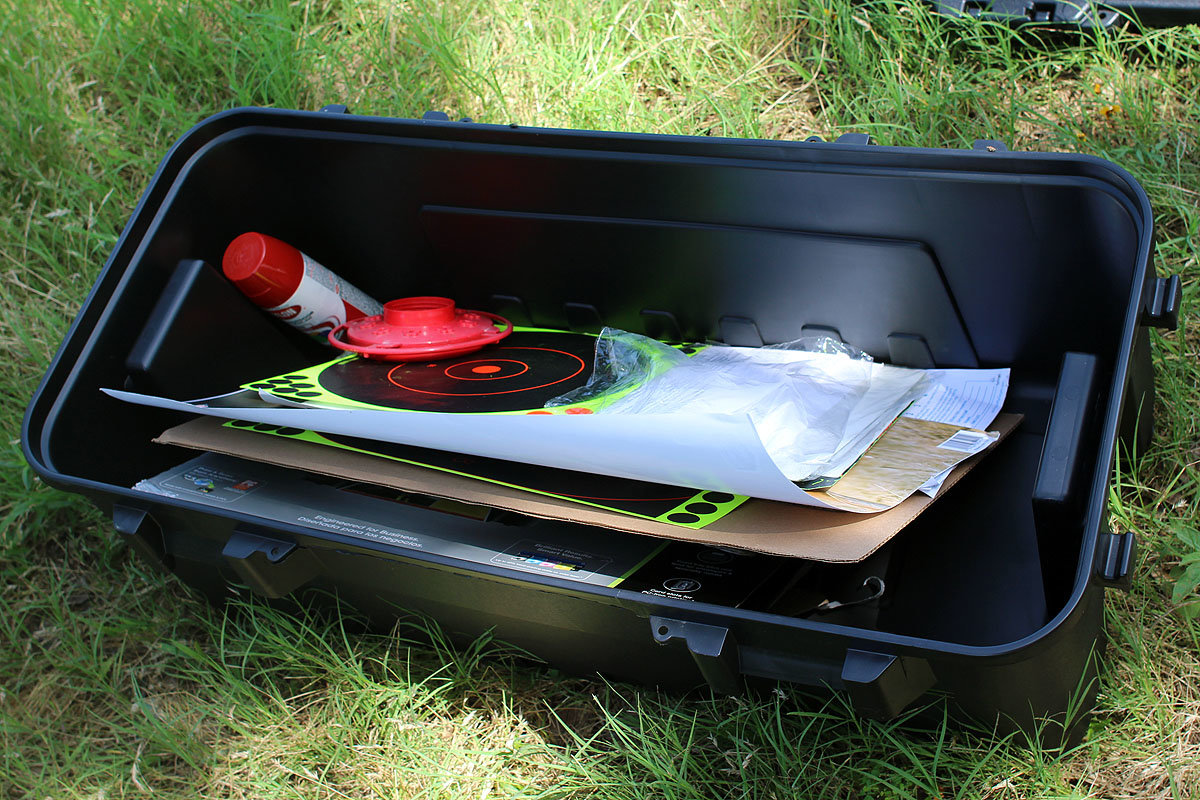 Above that, there are some nice extras. The box has wheels. I’ve recently used the box to store steel targets out at the range, and I appreciate the wheels much more. On both sides of the box are cleats that are shaped to hold the tension of rope or packing straps (more on that in a bit). The box even has points for locks, though I’ve always looked at locks on a plastic case the way I look at speed bumps. But if you want some speed bumps, they are there.