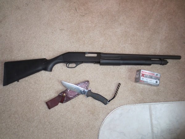 You’ll notice in the photo that I have 12 gauge shotgun, Stevens Model 320, and a decent size combat knife, a Swamp Rat RMDx LE. Sufficient tools indeed (What does your go-to home defense posture look like?).