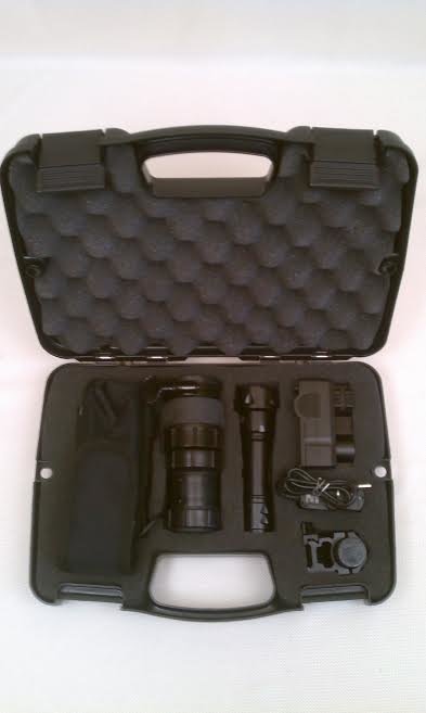 Digital Crosshairs works a little bit different than the other clip on night vision attachments. The ones I have used fit on the front bell of the scope and you look through your standard eyepiece and reticle, at an digitally enhanced picture that is sensitive to the infrared spectrum of light normally invisible to the human eye. Though those products less than impress me at over a grand, they do work, and I may put out some video I shot of my experiences with one soon just to show you. The Digital Crosshairs also works, but in reverse. They have made a digital lens cap out of a CCTV camera that is sensitive to IR. It looks down the scope as you normally do with your eye, then it projects that image on a little screen that sits next to the scope. Illumination is provided by an included IR flashlight, and a decent one that that.