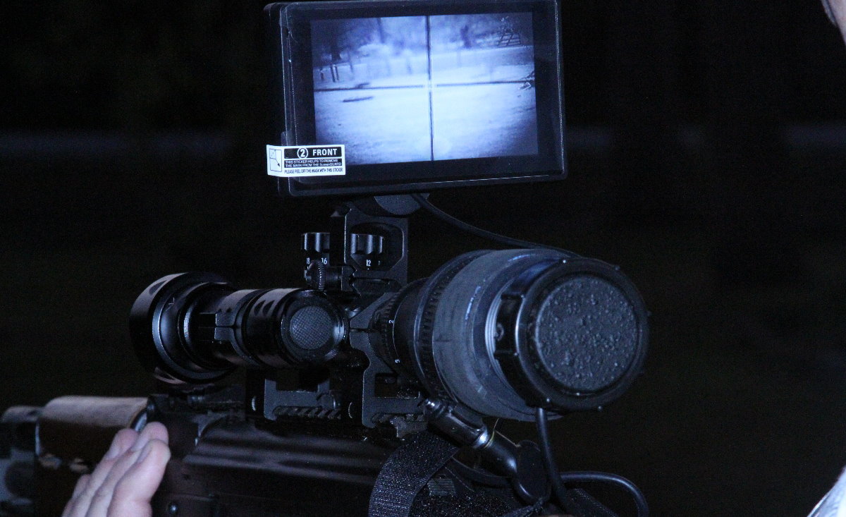 It sounds great, but it isn’t as good as you would hope. They clearly robbed the CCTV lens system off of a standard driveway camera, and if you look at those cameras, the lenses on them are surrounded by IR LEDs. Without illumination, even under a cloudless starlit sky, the screen on Digital Crosshairs is black. This is fine if you are going to use it for hunting pigs and coyotes at night (well kinda as I’ll explain), but in a self defense situation, your enemy is also going to have night vision. When you use an illuminator, it is light pointing a flashlight at your enemy that says “HERE I AM.”
