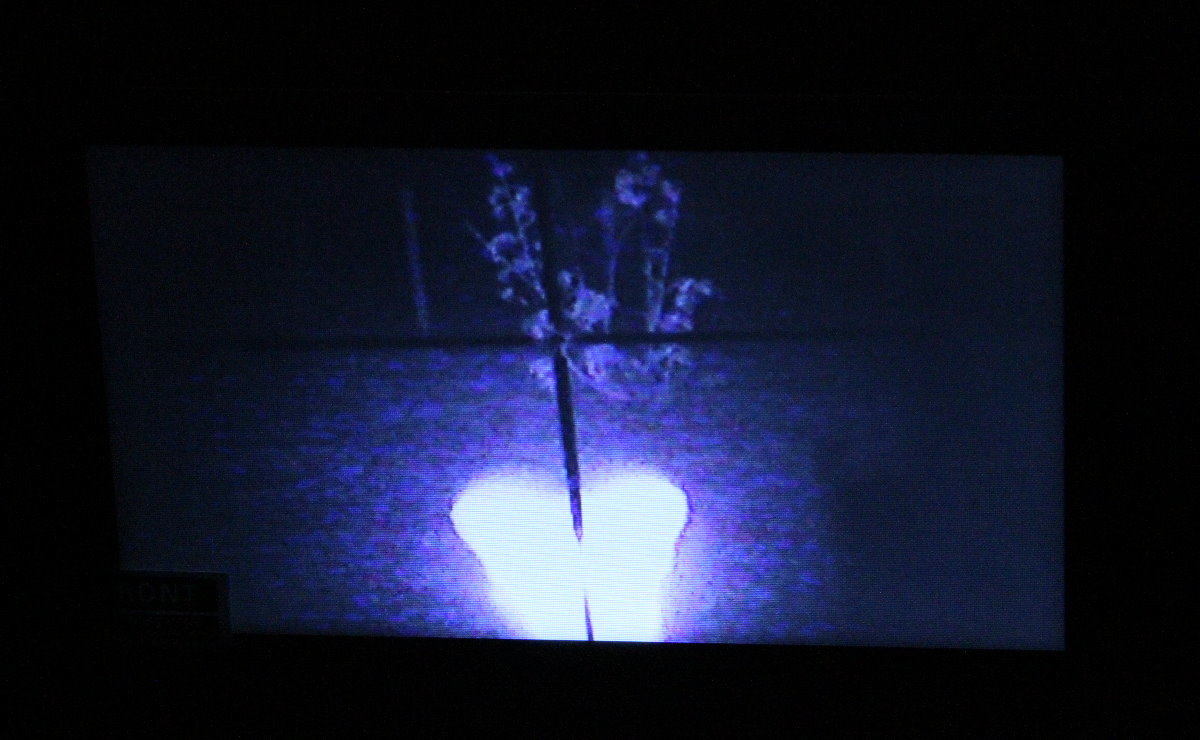 Other than that, Digital Crosshairs works as promised. If the screen is screwed down tight it doesn’t move much under recoil, and there is a side benefit that you can shoot somewhat around corners. I had a hard time getting the camera to hold the reticle in focus when the scope was under magnification, but at 1x on this Nikon 223 scope it worked fine. There are videos on Youtube of the scope working under magnification at 100 yards, but I didn’t find that the focus on the flashlight worked like it should so 30 yards was the useful range. For me the final dealkiller on Digital Crosshairs is that the bright screen completely robs your natural nightvision. With any other type of NV device you are looking in with one eye. Close that eye that has been contracted by the light in the scope and your other eye has normal nightvision. Both eyes contract with Digital Crosshairs, so the night is much darker than it otherwise would be had you not looked at anything bright.