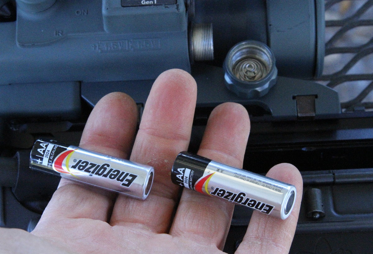 What are the downsides to a dedicated night vision scope compared to something like Digital Crosshairs or one of the other digital night vision devices? One is that in full light, the Yukon crosshairs are very hard to see. It relies on a pinhole lensecover to reduce the amount of light coming into the device, and in full sunlight the red crosshairs are very faint. The other big downside is that if your batteries are dead, you have no sighting device at all. The scope is off and you can’t see through it. With a removable device you at least always have your scope. This Yukon is probably the smallest dedicated night vision scope I have seen, but even it leaves very little room on the rail for backup sights. Right now I have it on a 7.62×39 upper, but I may move it to one of my other ARs that has a full top rail with plenty of room for offset backups and maybe a laser backup as well.
