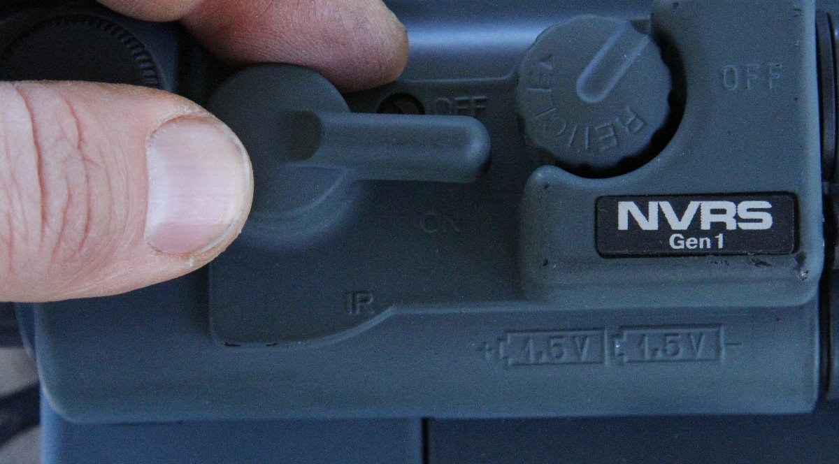 There is also only one on/off switch, and as you can see, the controls for IR are just one more flip down from on. The reticle brightness is right next to it, and the scope is zeroed with dials like normal.