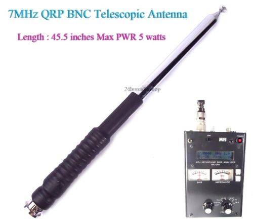The first is a 40 meter whip antenna at $23.49 shipped. In the add they show the antenna hooked up to the same antenna analyzer that I have and it shows an SWR of 1.2:1, which in Ham language equals pretty darn good. This whip will be much more effective if you hook a long wire to the negative pole on the antenna connection and just lay it on the ground. It is called a counterpoise.