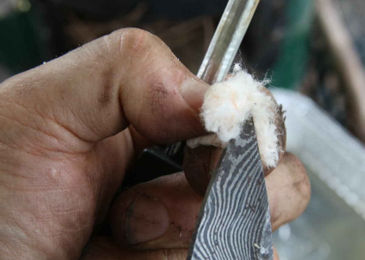 Surprisingly, one of things that actually worked reliably was the first firestarting material known to mankind. It is called Amadou, and it is made from a fungus that grows on trees. These days Amadou is mostly used for fly holders for fly fishermen, and they actually make felt hats out of it. I was able to get some of these felt scraps on Ebay (not cheap) and you’ll see my experiments in the pictures. They have found Amadou in old campsite excavations from a thousand years ago. Cool stuff.