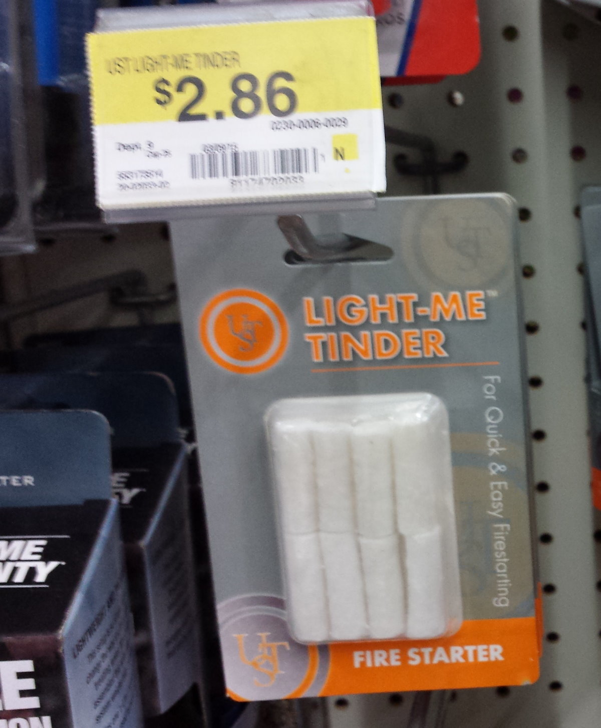 This is the most robust of the firestarting products at Walmart. It resembles the military firestarters but is much more expensive.