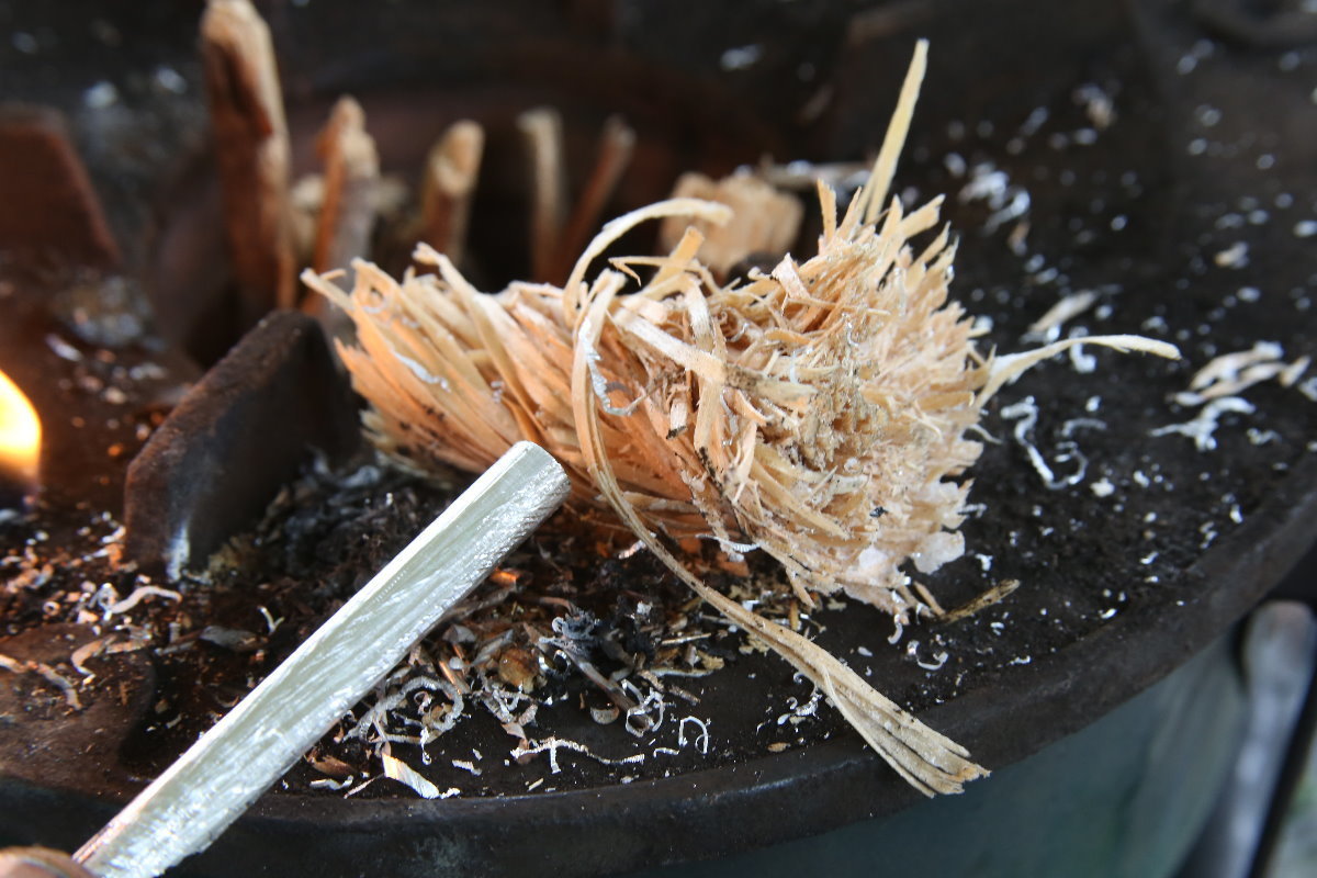 When the ferrocium sparks, it sparks big, especially with the thick ones. But that isn’t enough for some materials, even with repeated direct hits. On some of my tests I couldn’t get the tinder started at all, but the side of my test pan got scorched, and I could no longer hold the steel because it got so hot.