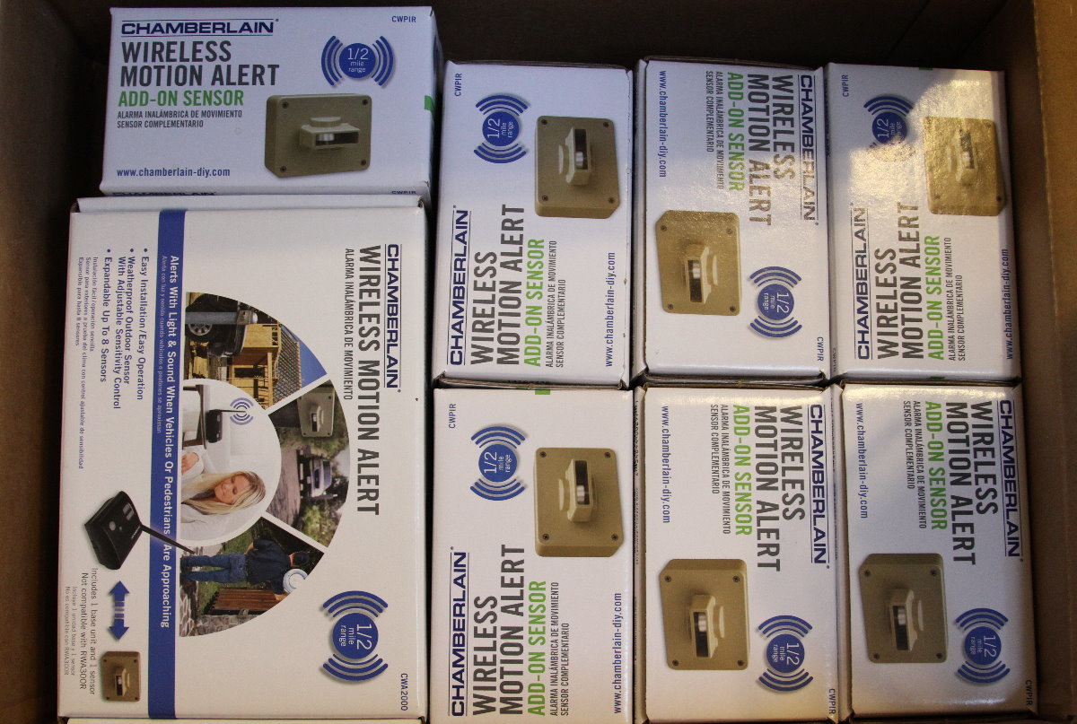 The other kind of wireless is motion detection. I selected these heavy duty rainproof sensors from Chamberlain.