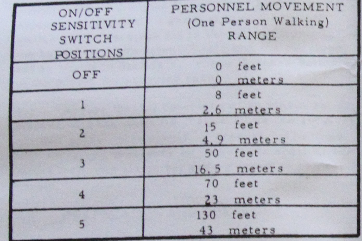 The probe on the TRC-3 is connected to a transmitter, and you set the sensitivity, with the most sensitive able to detect a man walking 50 yards away.