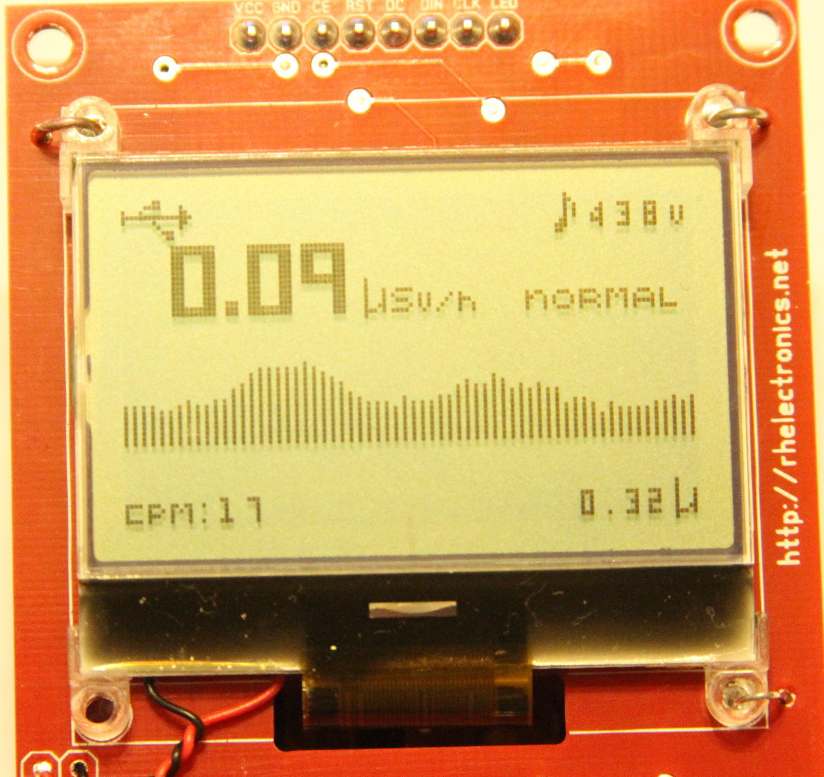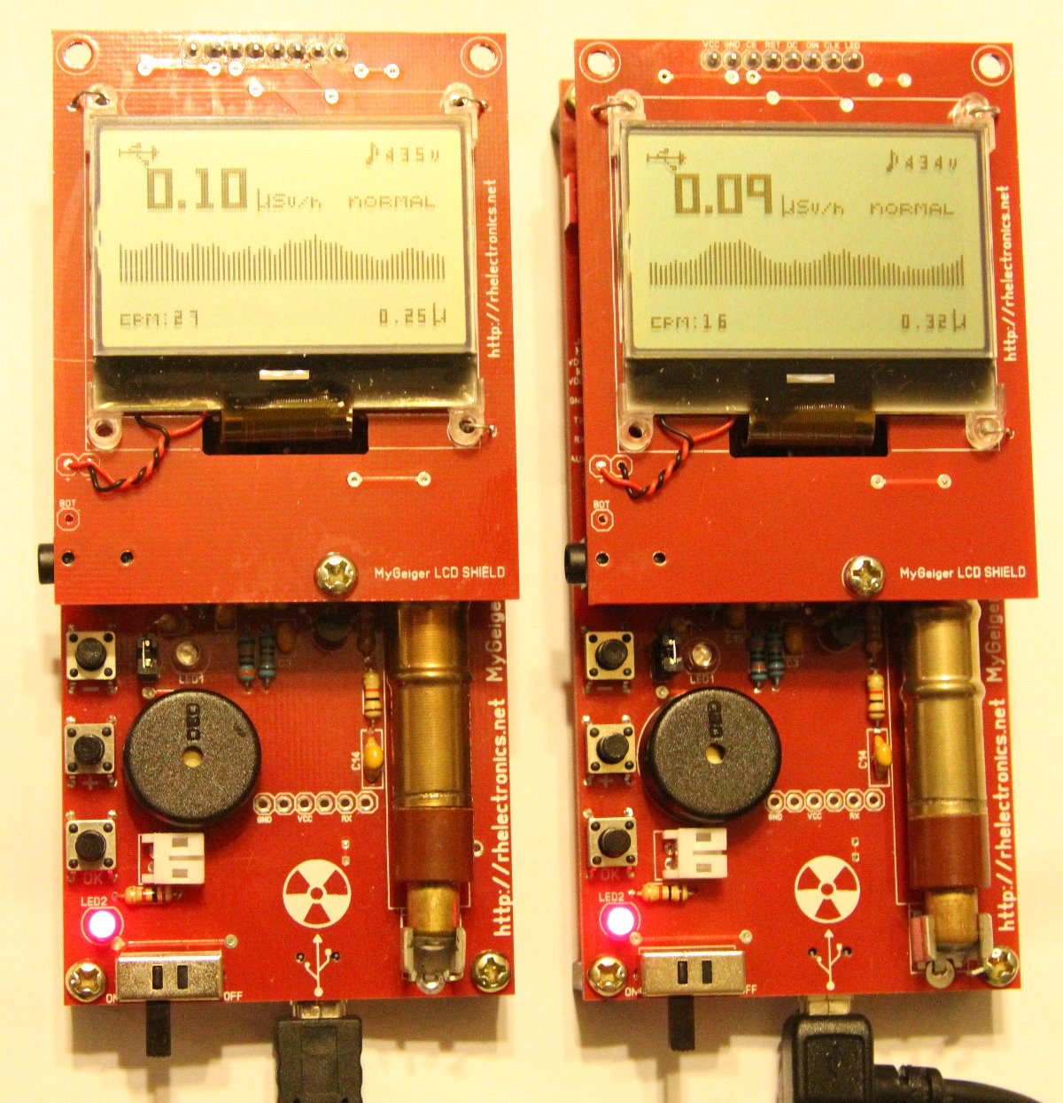 The VII MyGeiger kit is the cheapest device I have seen consistently available at this price. The tubes are also very available, and as low as $15 with free shipping from Russia right now on Ebay. In the first article we focused on the VI kit, because I hadn’t been able to get the VII, but if you don’t already have one, I would buy the VII kit. You don’t need an extra interface to use it with the free Radiation Logger software, and it uses a regular USB instead of a printer cable to connect. The circuit has also been modified to handle a higher level of radiation, and the overall assembled board is cleaner and less subject to getting bumped. You can and should make an enclosure for the kit, but beware that the battery sold by the Radio Hobby Store, or at least the one that came with my kit, didn’t have the right connector. It can be powered via the USB as well.