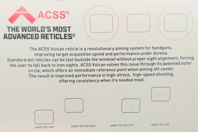 The MSRP is $699 for the 4 MOA dot reticle and $749 for the ACSS Vulcan Dot reticle. Also, both models look to deliver exceptional value for those seeking innovative and domestically produced pistol optics.