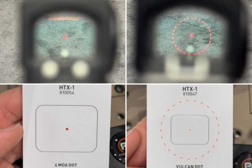 Shooters have the choice between two reticle options with the HTX-1: the ACSS Vulcan Dot, which includes a toggleable outer ring for faster target acquisition, or a 4 MOA dot reticle.