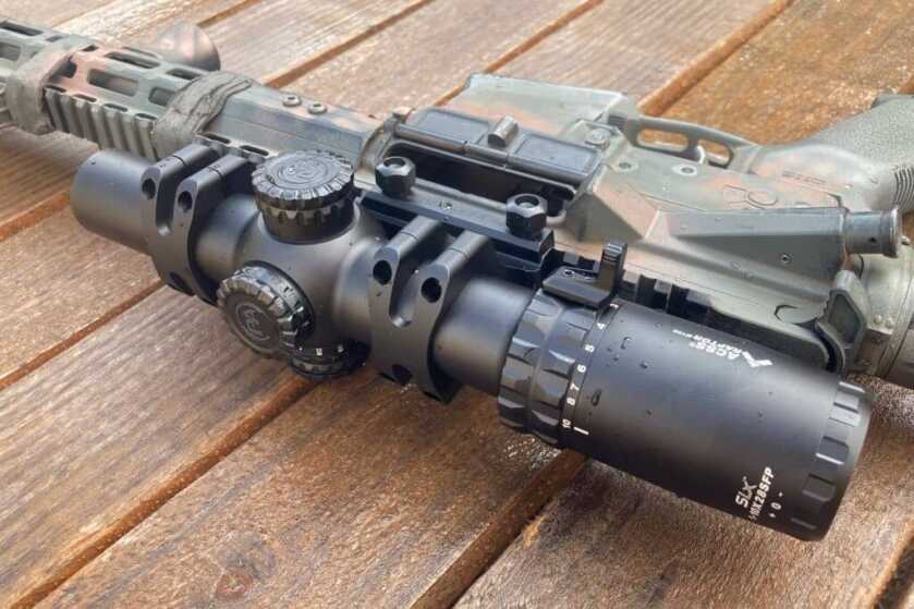 This scope has a 34mm body. Poor light transmission is an issue that plagues LPVOs due to the optical constraints that prevent manufacturers from enlarging the objective lens. In this case, the objective is 28mm.
