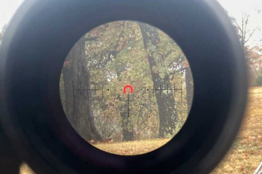 The reticle brightness is controlled by the turret on the left side of the scope. It has 11 brightness levels which include two night vision settings. I have tried aiming passively through this scope with night vision and it was far from practical. Although I haven’t met a person yet that would recommend an LPVO for passive aiming with night vision. On the other hand, the daylight settings get bright enough to be used like a red dot in most environments.