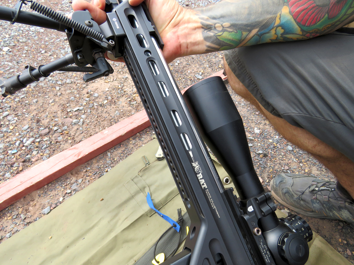 MasterPiece Arms takes chassis modularity to the next level with machine work that borders on the artistic. The grooves machined into the sides of the chassis are Arca Swiss compatible for direct tripod mounting and the holes along the bottom are for setting up their barricade stop system, which is great for PRS skills stages.
