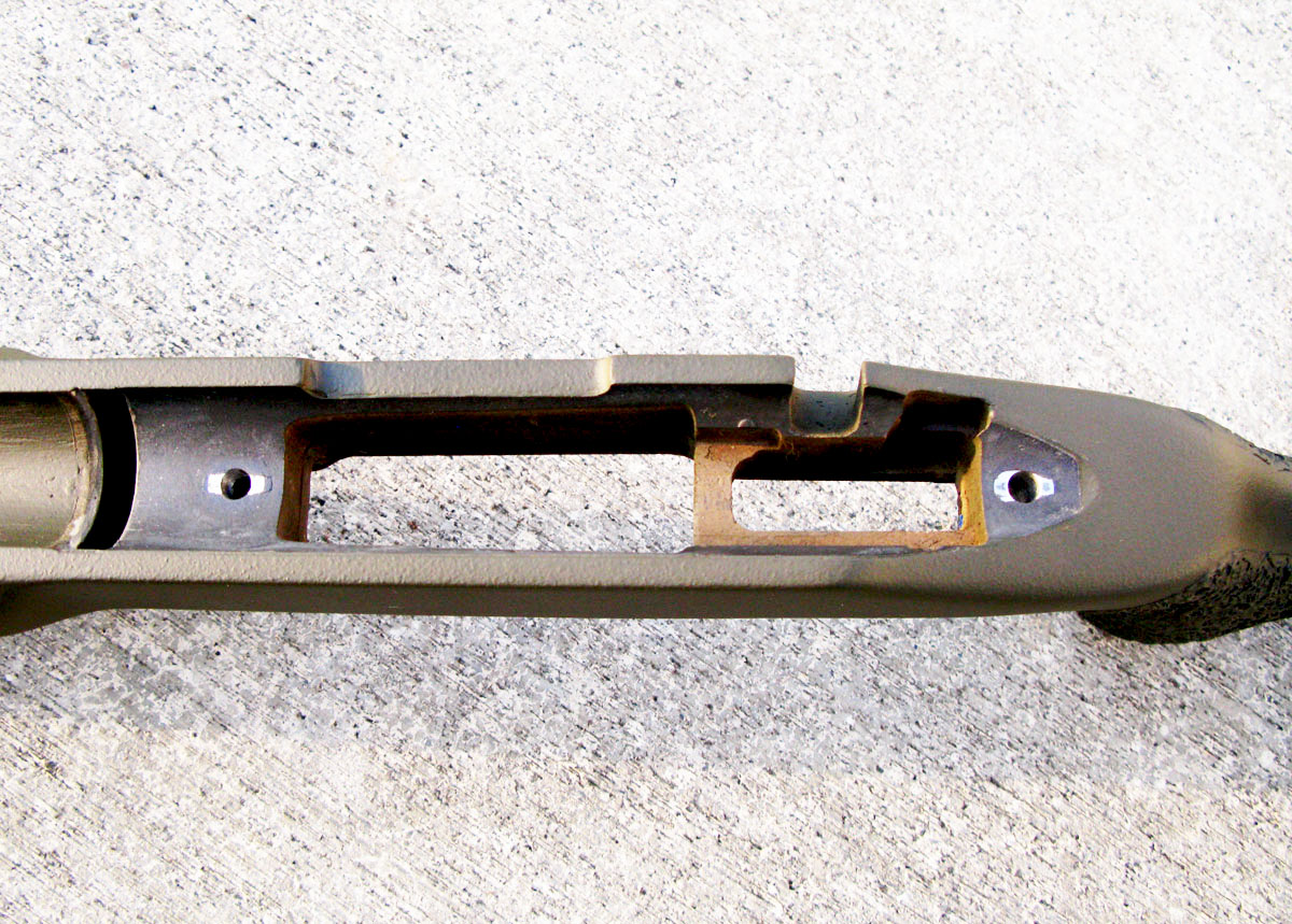 While the Manners T6 pictured earlier featured their mini-chassis, most traditional composite stocks need to be epoxy bedded in something like Marine Tex or Devcon Steel Puddy. When done properly it will look like the above bedding job that matches the action perfectly to give it a nice, stress-free resting place for consistent accuracy.