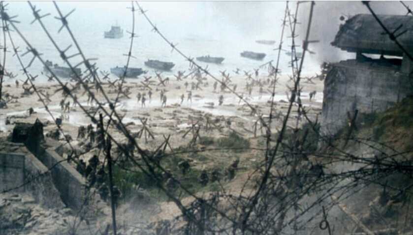 CPT Goranson was naturally in the first British LCA. At around 0645 the defending Germans opened up on Goranson’s boat with artillery, mortars, and small arms. Four high explosive rounds struck the LCA as it landed, killing twelve Rangers outright. Many of the rest were wounded.