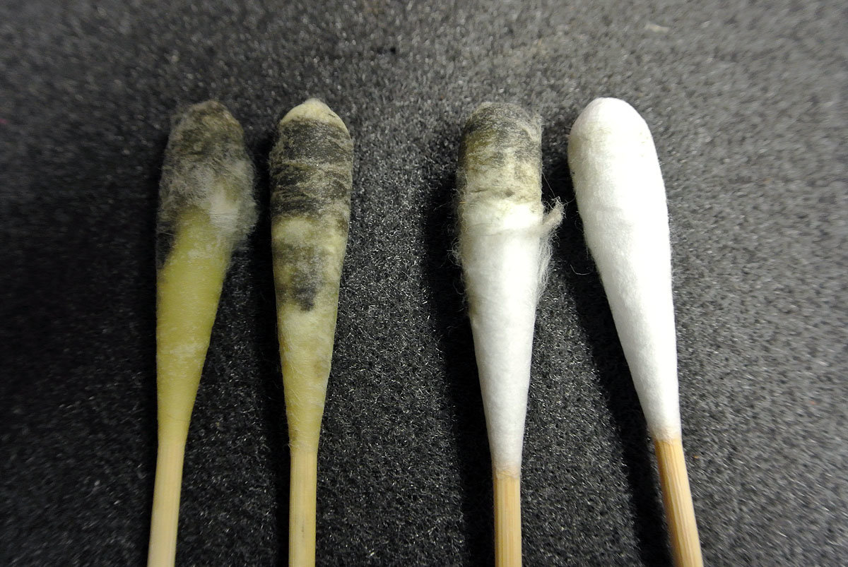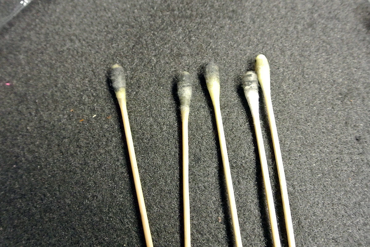 When I first saw them in the packaging, I was a bit skeptical. They look like big Q-Tips, you know the things you stick deep in your ears, even though they say not to. My concern had less to do with their resemblance to the Q-Tip, and more with the very real possibility that RamRodz would leave a ton of cotton fuzz on everything they touched. I was wrong. Once you pull these out of the package, you can see and feel that the cotton tips are not the same as the ones you have in your medicine cabinet. They are soft and spongy but firm, almost like foam Nerf gun bullets. But they are cotton, absorbent yet not fuzzy.