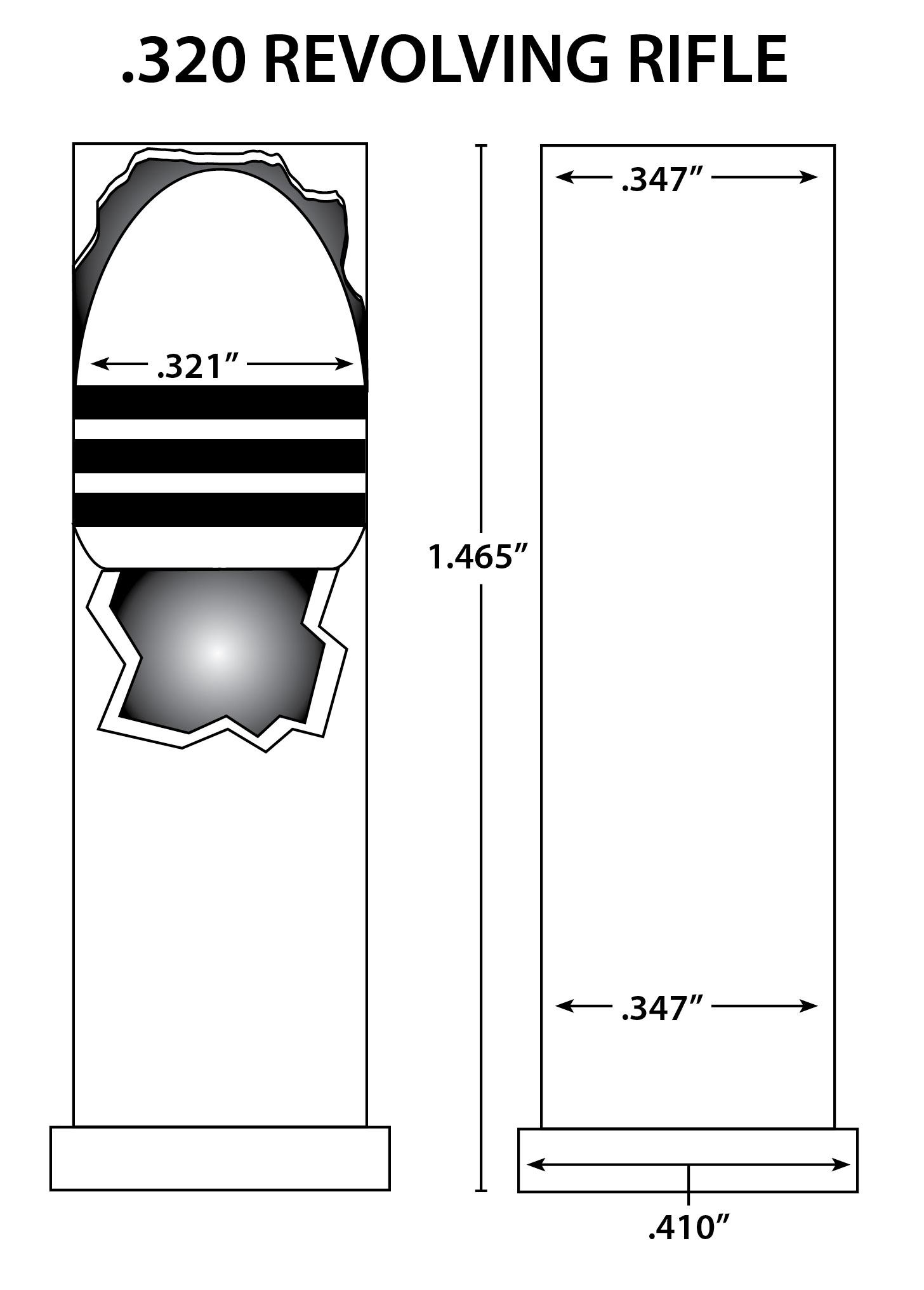 The rounds were a centerfire cartridge referred to as the 320 S&W (a.k.a. .320 S&W rifle and .320 Revolving Rifle). Attempting to address several of the shortcomings of revolving rifles, which will be covered later in this piece, Smith & Wesson designed the brass of the round to be as long as the chamber. It looked a lot like a round of .30 carbine if the bullet was seated too deeply, with the nose of the bullet flush with the rim of the brass. If you’re thinking that’s quite a bit longer than your average handgun cartridge, you’re right.