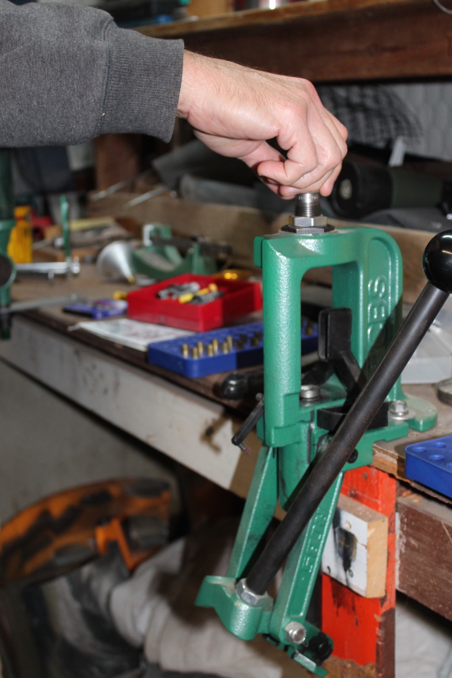 – Add bullet, cover with the hand die and tap to set and crimp.