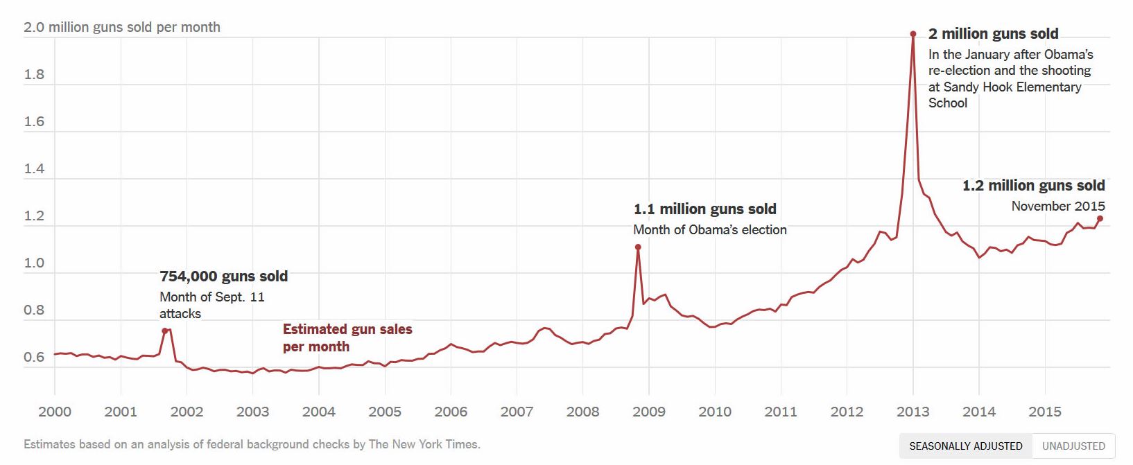 “We do believe that having a Republican in the White House…negatively impacts gun sales in that it effectively eliminates any threat of new gun regulation for the foreseeable future,” said James Hardiman, managing director of equities research for Wedbush Securities Inc.