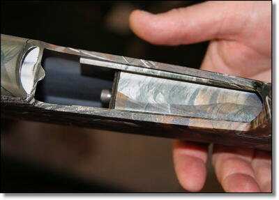 The new Remington system uses the length of the shell to determine how the gun buffers the power of the shell. It isn’t some kind of electronic sensing technology though. They just drilled the gas port holes at varying distances from the breech of the shotgun. It is painfully simple and makes perfect sense. The shorter and weaker the shell, the more gas you need to capture from the powder burn to work the action of the gun. You want the maximum number of holes to capture that gas on a short shell. But on a longer, more powerful shell, you need less gas to achieve the same bolt velocity, so you let the shell cover some of those gas ports.