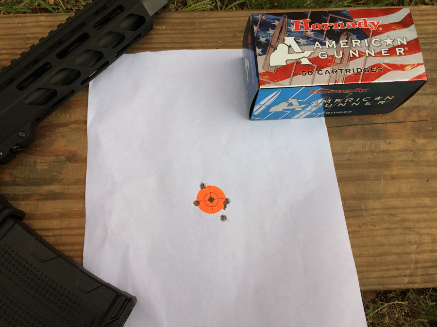 I was even more impressed with how the rifle responded to my next test. I dumped a few mags to heat the lightweight barrel and shot another group with the Hornady 55g loads.