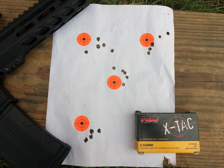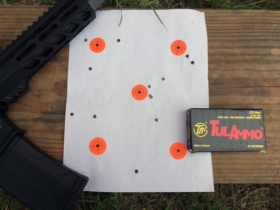 As with all rifles, accuracy fluctuated based on ammunition. The cheaper American Eagle performed more poorly than the higher-quality Hornady American Gunner and PMC X-TAC, and the TulAmmo performed so terribly I couldn’t even record group sizes.