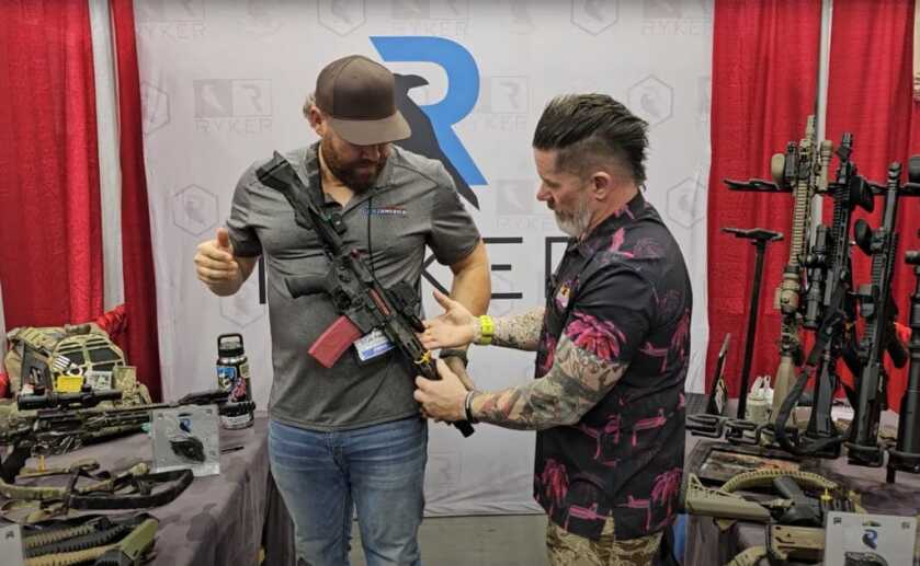 Ron also demonstrated how their Ryker Sling 2.0 with built-in elastic keeps your firearm close to the body while transitioning to different positions. It also aids in keeping the muzzle pointed in a safe direction and away from your body. Paired with the Grip, the elastic sling helps to retain the firearm in the pocket of your shoulder.