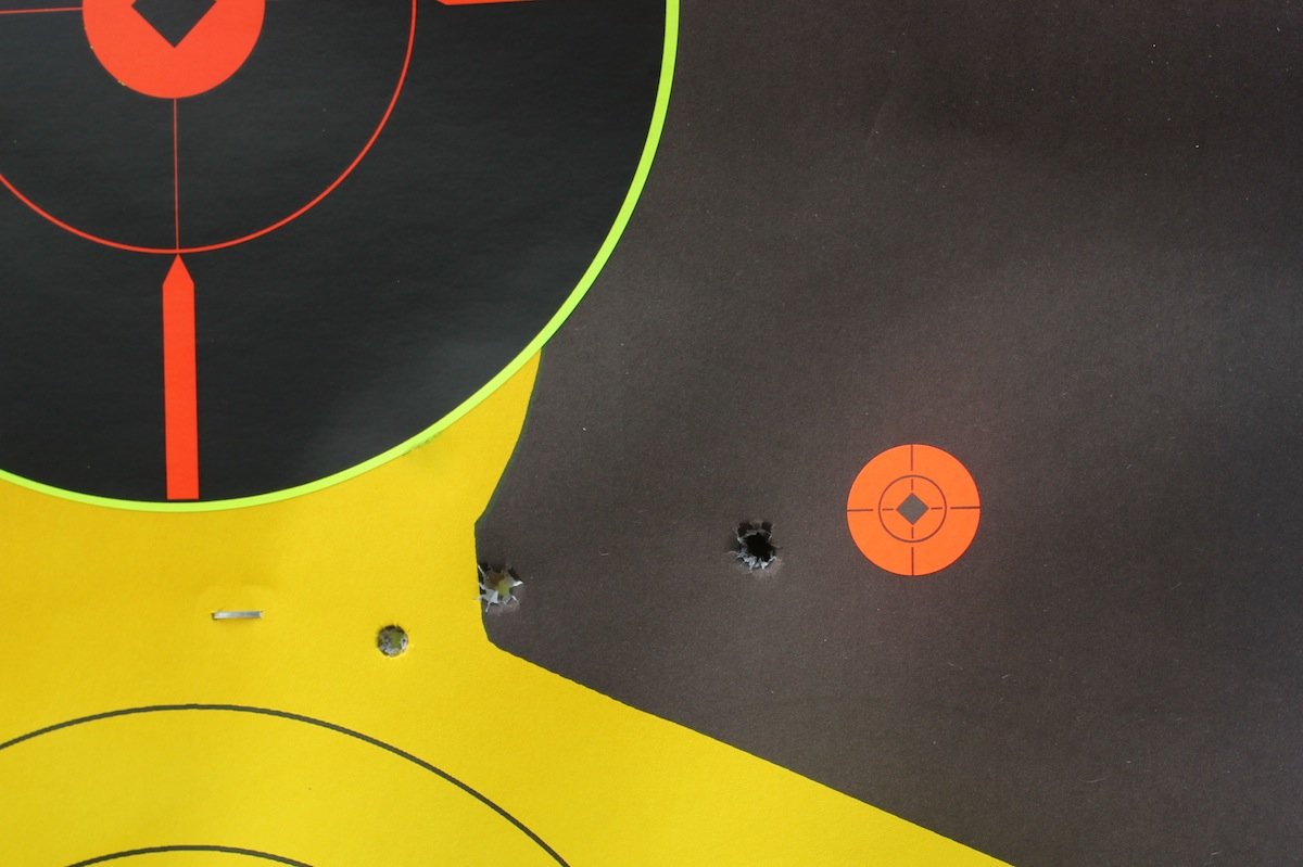 How did she do? Not too bad. She dialed it in quickly, and got to the point where she was hitting within a 3 inch circle on each shot.