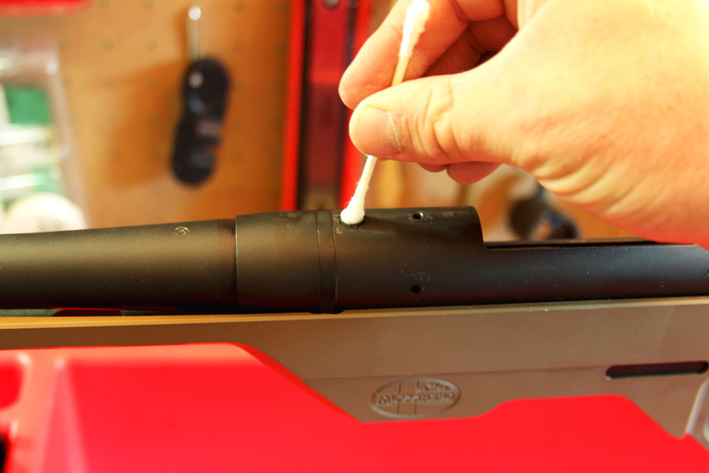 Use a degreasing agent to clean out the screw holes in the action in addition to the screws and any bearing surfaces.