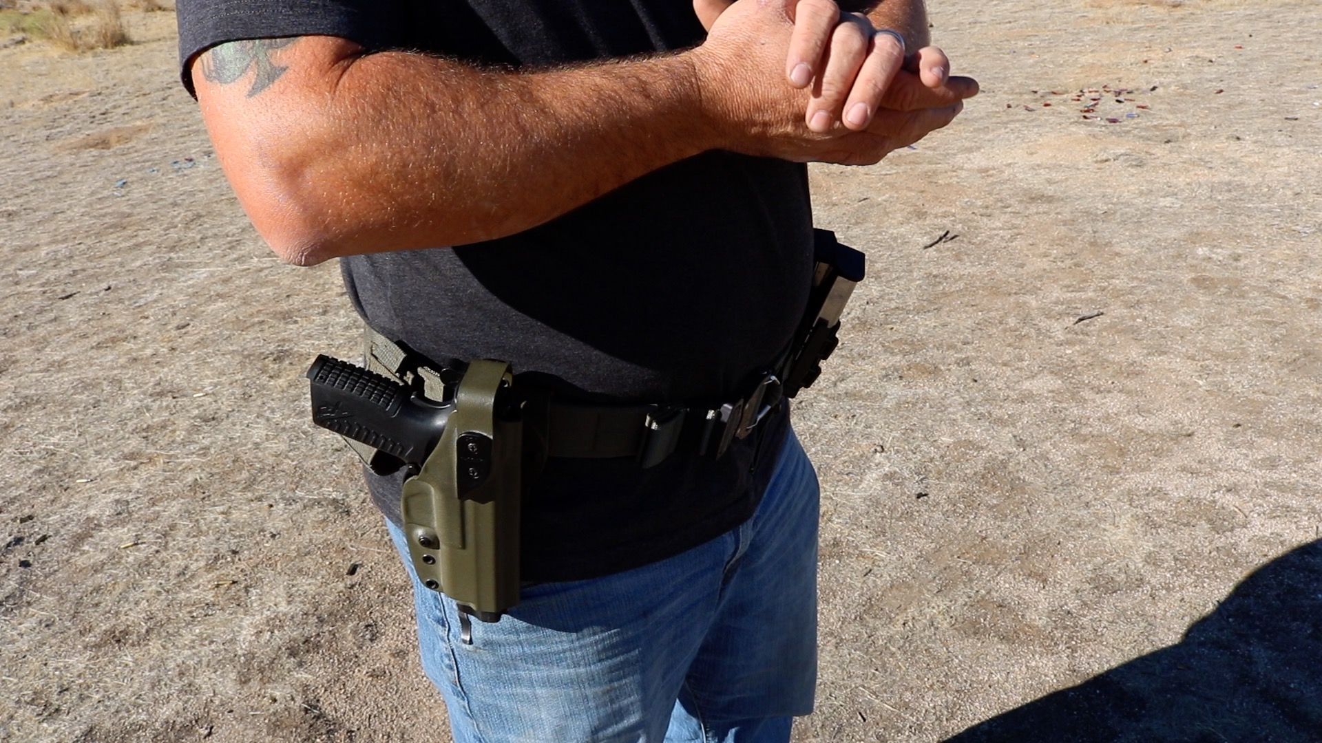 Option one is the XST, a fantastic retention holster. At first glance, I was prepared to not be impressed by this. It looks in pictures like a copy of the old Safariland hood system, and I have been over that system for a long time. It was cool back in ’93 when we were hose clamping Maglites to our rifles and all, but the world moved on. Fortunately for me, I got the XST in hand before I fully passed judgment.