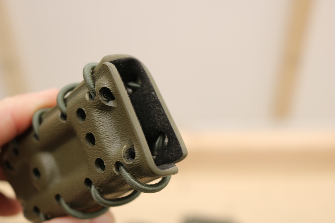 All of the hard shell models are coated on the inside with G Code tactical fuzz, like a rhino liner for your mag pouches. It makes the Kydex a little quieter, and also helps with retention. It adds the tiniest bit of friction, like the suede liner we often see in holsters.