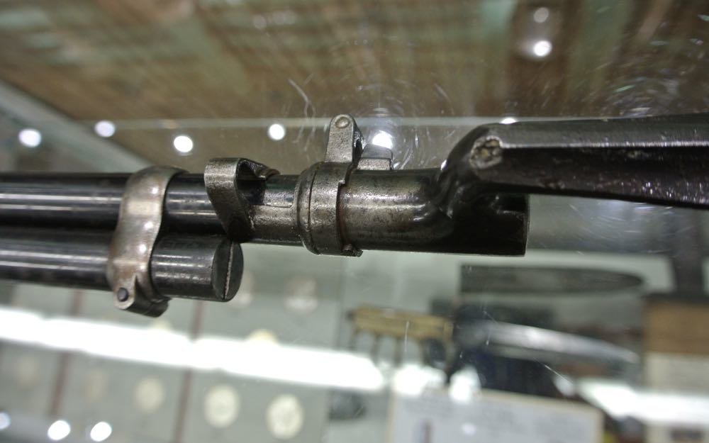 The lever by my thumb turns to let expose the touch hole for the different barrels.  They don't all three go off at once... in theory at least.