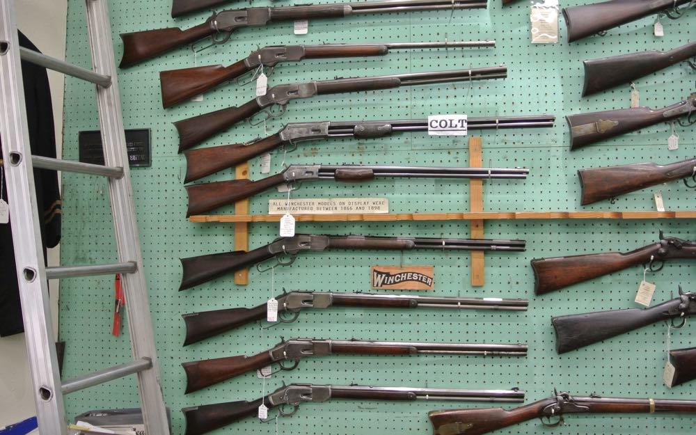 1866 Winchester Musket in the Cohen’s shop. This one was used in a local battle during reconstruction.