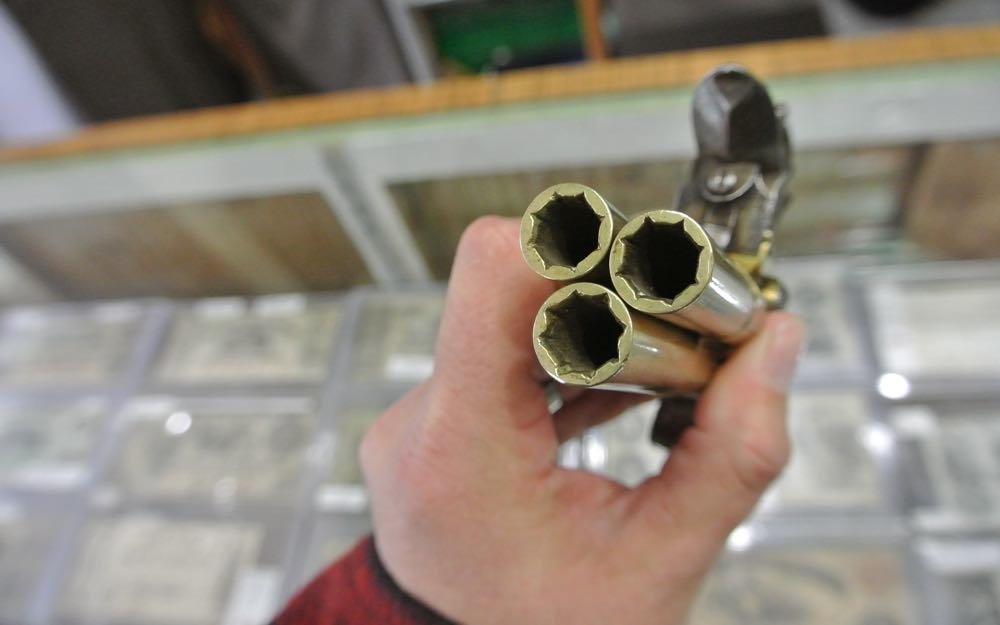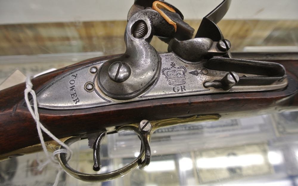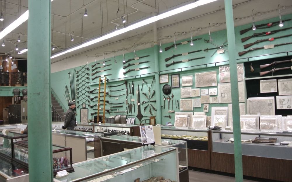 Guns on the walls, coins in the cases. They sell antique maps too.