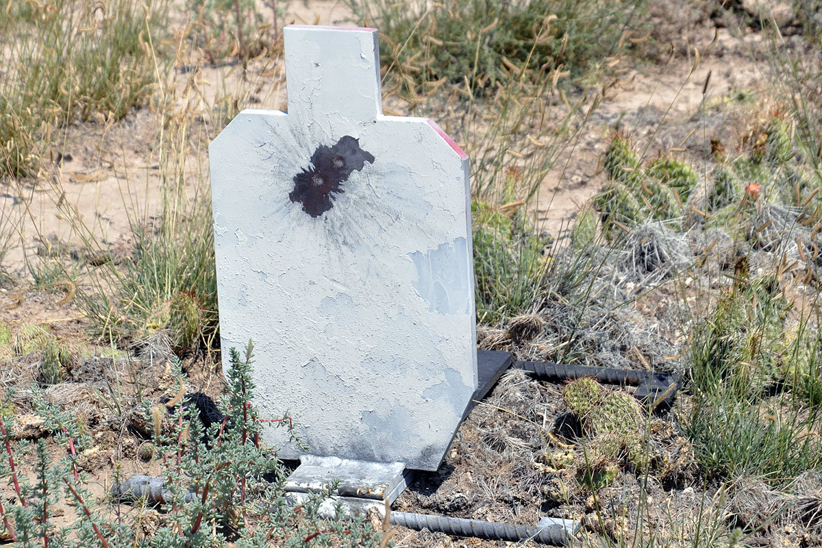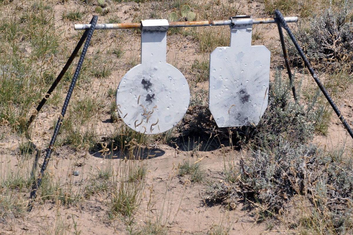 The gongs at the 600 yard mark are 12″ and 14,” hard enough to see and harder to hit.