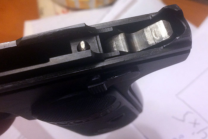 What set the Pocket Hammerless apart from other pistols of its time was how smooth, rounded and concealable it was. Take a look at the pictures. The 1903 has the features that I look for in a concealed carry piece. There is very little here to get hung up when drawn from concealment. The hammerless part of the name is not exactly true. The 1903 does have a hammer–it is covered by the slide, which makes it that much more well suited for concealed carry.