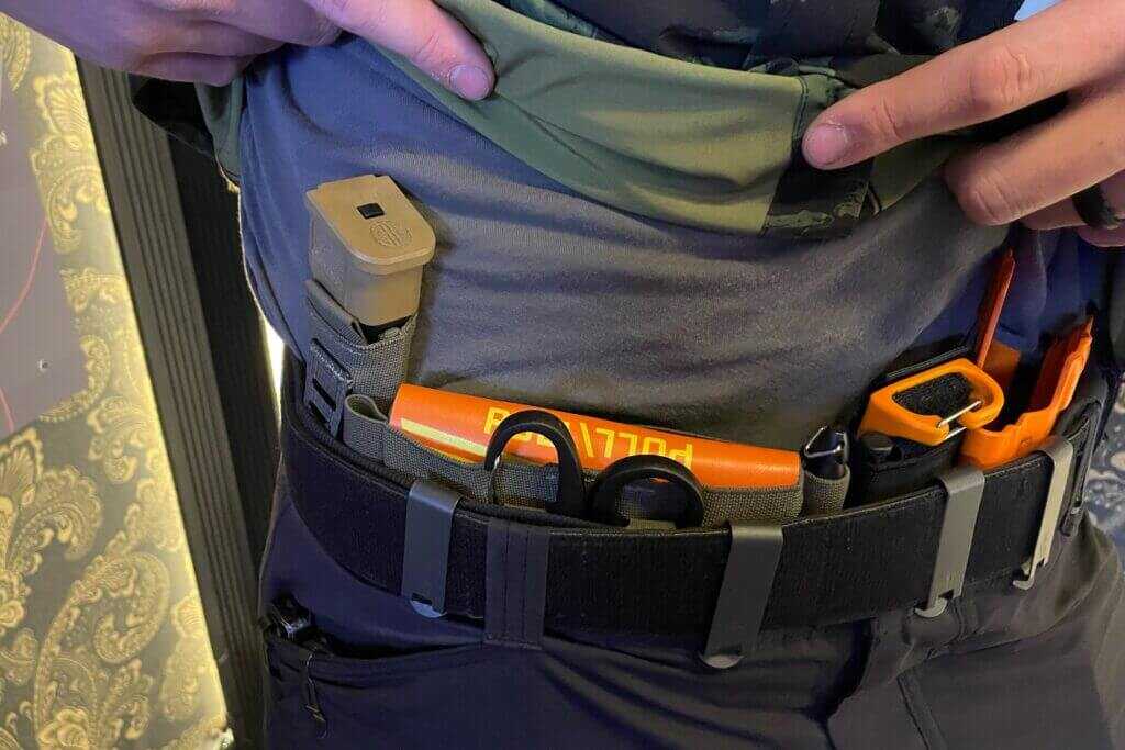 This design reflects a broader shift away from spare magazines in some concealed carry setups. The ReadyMed Pro uses that same belt real estate for medical priority instead.
