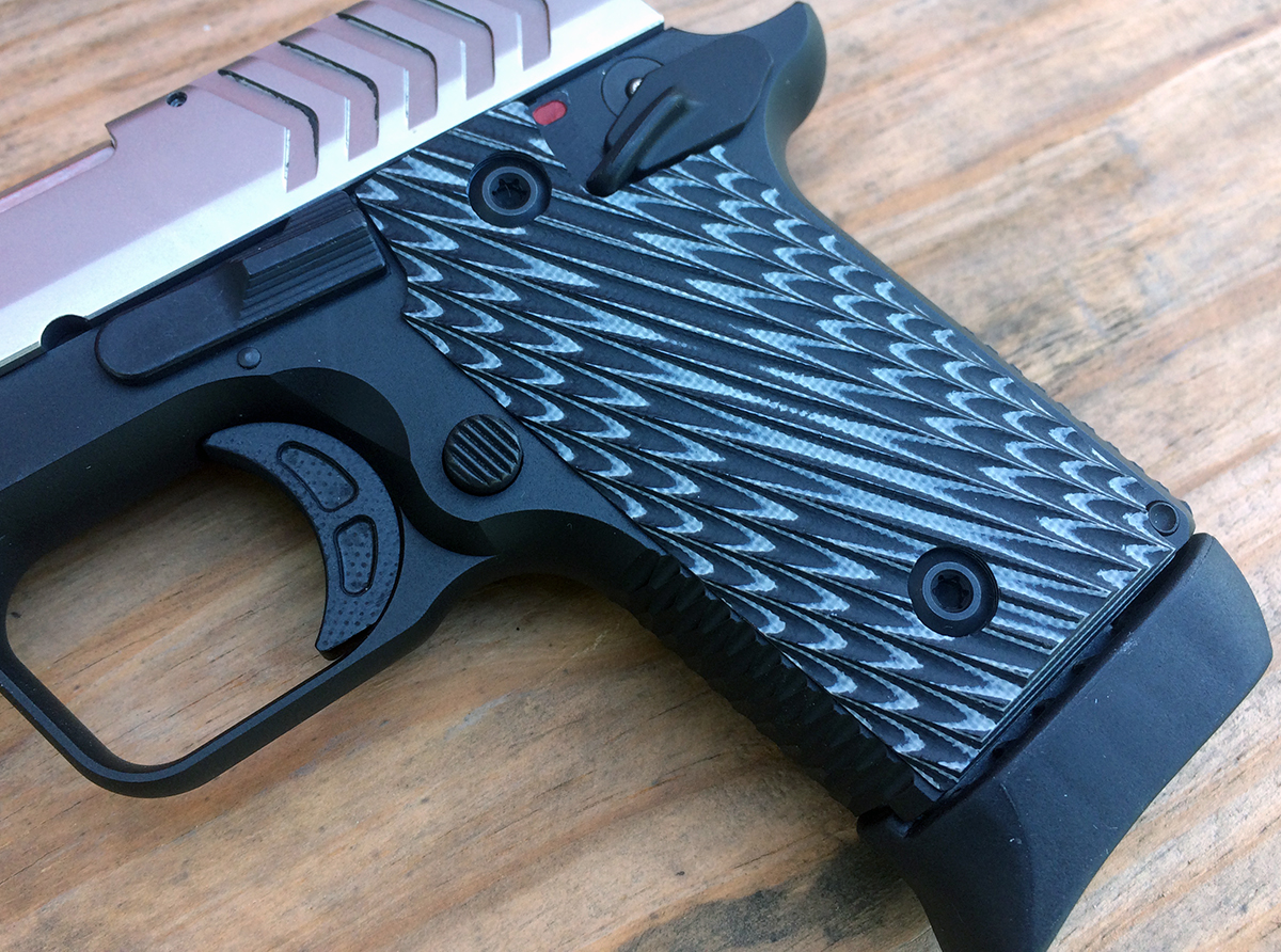 The grips and trigger are both constructed with G10 plastic, a high-pressure thermoset laminate made of multiple layers of woven fiberglass mesh cloth held together with an epoxy resin. It’s basically super tough plastic, and it makes the gun a bit lighter than other pocket pistols. Springfield included grip texture in all the right places (front strap and backstrap, safety lever, trigger, and hammer), but more importantly, they used the right amount of texture. It’s aggressive enough to provide confident handling, but it won’t take off a layer of skin if you use an IWB holster.