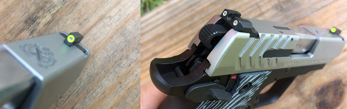 The yellow front sight stands out in all but the darkest conditions, and the rear white dots provide a nice contrast.