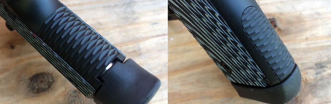 In terms of ergonomics, the trigger guard extends farther forward on the 911 and has a small cut-out where the guard meets the grip. Both features allow shooters to use the firearm more easily with winter gloves. The beavertail extends farther to the rear of the gun, which helps control recoil. The 911 also comes standard with G10 grips. Grip texture is a matter of opinion, but I prefer the 911 grips over the P238.