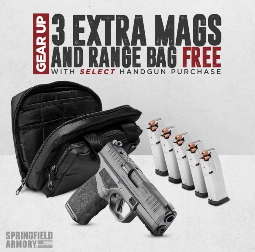 The Gear Up program will run from September 15th, 2023, through December 31st, 2023. Eligible buyers will receive three additional magazines and a Springfield Armory dual pistol bag, with a retail value that can top $150. They must simply show proof of purchase and fill out the redemption form online by January 31st, 2024, to redeem their Gear Up package.