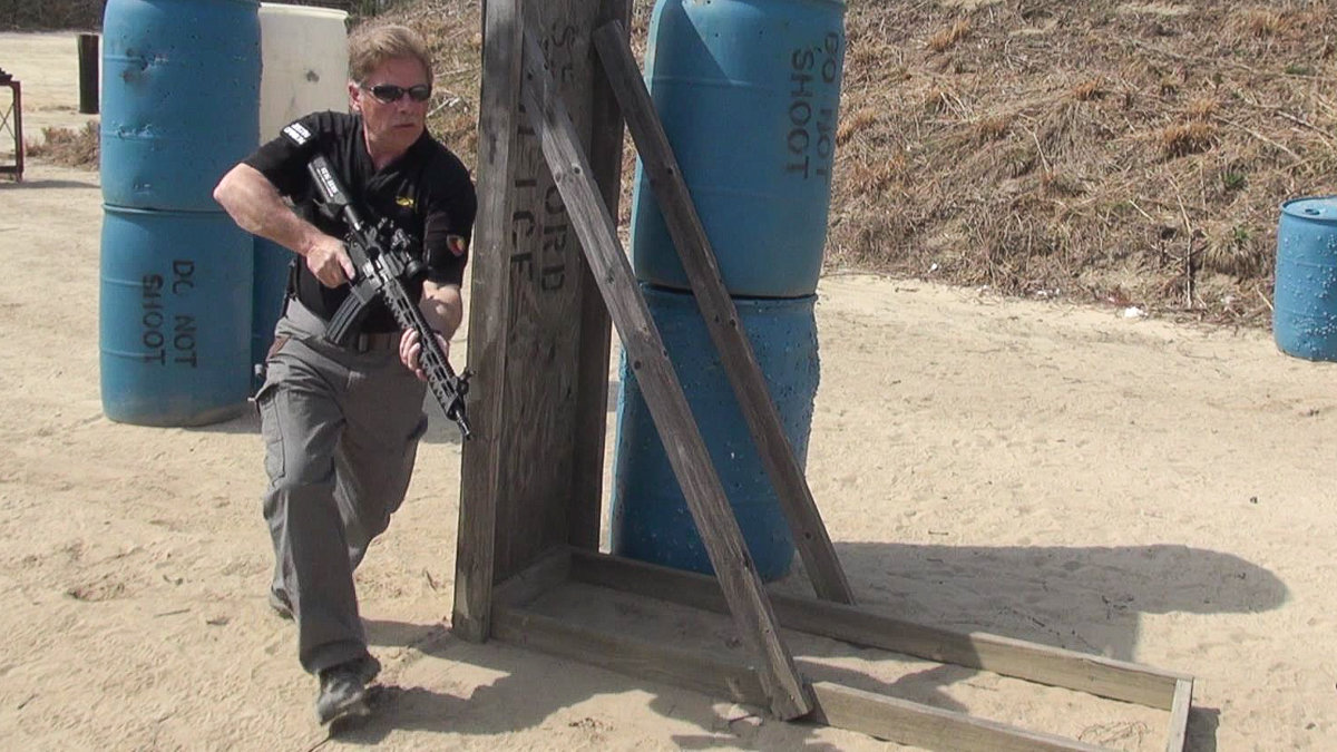 Next, I moved up to a red-dot optic that would be more indicative of a competitive or tactical operator’s use. I chose the Aimpoint PRO (Patrol Rifle Optic) for this purpose, and it was perfectly suited. The Aimpoint and the Diamondhead sights co-witnessed perfectly and gave me the fast acquisition sight picture I needed to run this gun through a moving course of fire.
